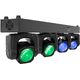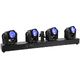 Eurolite LED TMH Bar B240 Moving-Head Beam; LED lighting system with 4 individually controllable 60W moving heads, 4 x 60W SMD 6065 4-in-1 QCL LEDs; Control: Stand-alone; DMX; Sound to Light; Master/Slave; QuickDMX via USB (optional); Beam effect; Precise positioning (16-bit resolution) within 540° PAN and 180° TILT; Electronic dimmer; Flicker-free; Beam angle 2°; Crossbar with integrated DMX control unit and tripod sleeve; Omega bracket included; 4-digit 7-segment LED display; Rubber feet; Cooling via temperature-controlled fans; Power connection: PowerTwist In/Out, for easy daisy-chaining of up to 8 units; DMX connection: XLR 3-pin In/Out; Power supply: 100-240V AC, 50/60Hz; Total connected load: 230 W; Dimensions (W x D x H): 100 x 17.5 x 25.5 cm; Weight: 12.55 kg